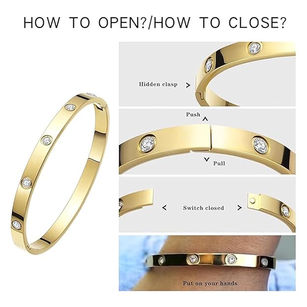 Nail Design Gold-Tone Bangle & Crystal-Studded Screw Design Bracelet/Kada Combo – Unisex Anti-Tarnish Gold Plated Set of 2
